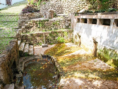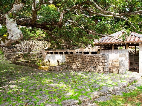 仲村渠集落の飲料水、洗濯、野菜洗い、水浴びなどの生活用水として利用された共同水施設。琉球石灰岩の台地から湧き出る湧き水は、現在主に農業用水の水源として活用されている。100年ほど前までは木製の桶を置いただけの簡易な施設でしたが、1912年から翌年にかけて石工の手により琉球石灰岩などを使い造り替えられました。その後沖縄戦で破壊されたため、昭和39年に改修され、平成16年の復元工事により1912年当時のままに復元され、敷地全体の景観も整えられている。男性用の「イキガガー」と女性用の「イナグガー」があり、それぞれに洗い場と水槽があり、また珍しく五右衛門風呂が設置されている。