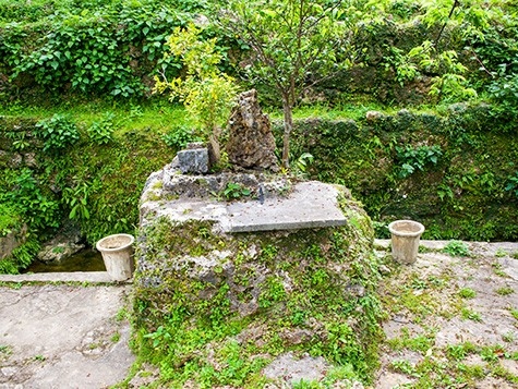 集落ではかなり古い時代からある井戸で、別名を夫婦井(ミートゥガー)とも呼ばれ、井戸の前庭中央に自然石があり、古くはこの石から左右に分かれて男女が利用していました。また、自然石の下、中央にくぼみがあり、これは頭髪を洗うときの水をためたビンダレー(洗面器の代用)ではないかと考えられている。道を隔てた北側には知念若按司が住んでいた屋敷跡があり、この井戸は知念若按司が作ったとも伝えられている。