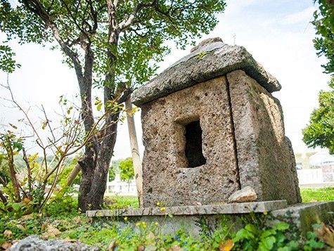 文字の書かれた不用紙を焼くための炉で、19世紀の中頃に中国から敬惜字紙の風習が伝わったもの。一説には冊封使の林鴻年(りんこうねん)が字紙を路上に捨てずに敬うことを説き、この詩編を大切に扱わせるための炉を設置。これに入れて焼くことから始まりました。百名の焚字炉は明治時代に作られ、国道沿いにあった茂のが現在の場所へ移転されている。4枚の石灰岩の平石を組んで作られていて、前に長方形の紙を入れるための穴と、後方には排煙のための円形の穴が開けられている。