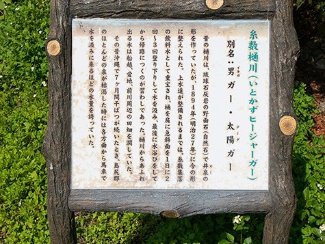 かつては自然の湧水に野面積みで井泉の形を成していたが、1894年(明治27年)に現在の形に整えられた。糸数集落の住民は日に2~3回斜面を往復して水を汲み、最後に水浴びして家に戻るのが習わしだったという。あふれる樋川の水は、眼前に広がる船越・前川地区周辺の田畑を潤していた。