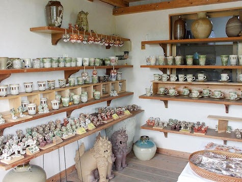 浜辺の茶屋近くの細い道沿いにあり、赤瓦とシーサーたちが目印。オーナーは、京都の清水焼や壺屋の工房で修行を積み、店を構えて27年以上経つという大ベテラン。それでいて飾らず素朴な風合いの陶器が人気を集める。ユニークなポーズのシーサーも見ていて楽しい。