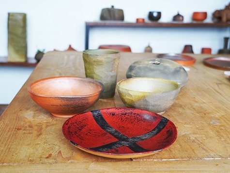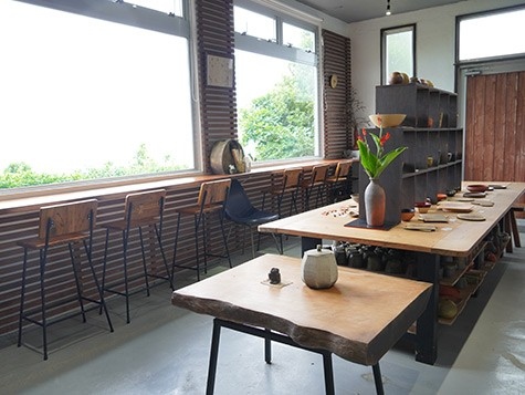 陶芸家である一ノ宮侑(ゆう)さんと一ノ宮現(ただす)さん親子のギャラリー。釉薬を使わず、土の触感を活かした作品や、布を張って漆塗りで仕上げた作品など、独特の技法を追求した品々が並びます。カフェも併設されており、作品で飲むコーヒーは格別。