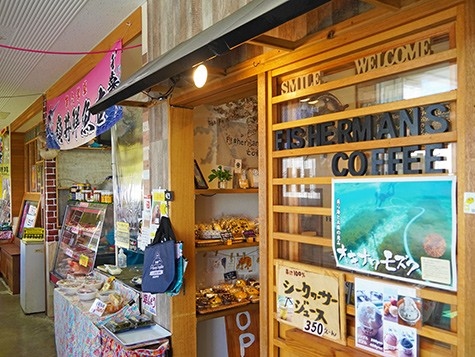 奥武島にある「いまいゆ市場」のテナントとしてオープン。看板商品のコーヒーは「YAMADA COFFEE OKINAWA」(宜野湾市)の豆を、直伝のハンドドリップで提供します。