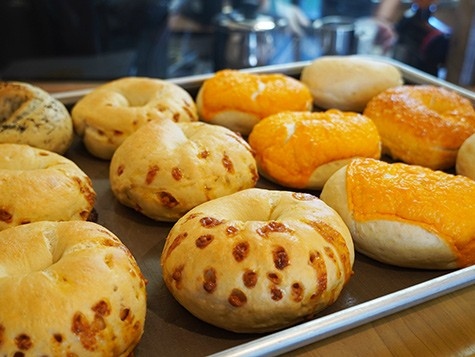 鮮魚市場の中、ベーグルとハンドドリップコーヒーのお店