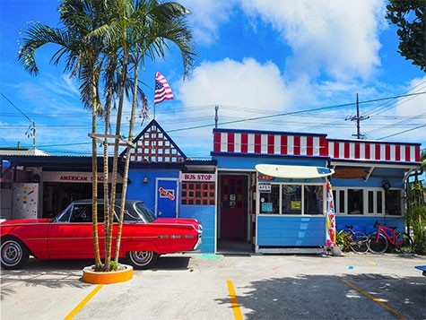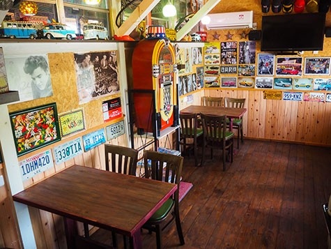 車とアメリカをテーマに、オーナーの趣味で集めたグッズが並ぶ店内は、アメリカンスペースにいるようなどこか懐かしい時間が流れます。