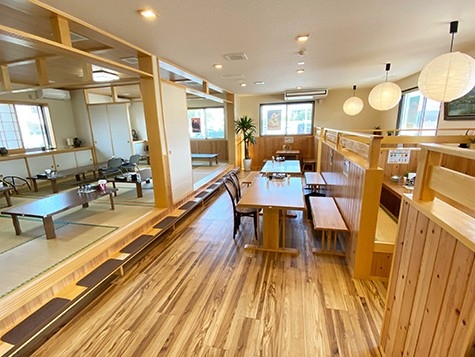 国道331号沿いに建つ、昔ながらの沖縄の食堂を感じられるレストラン。2019年にリニューアルし、テーブル席と座敷が広々と充実。ゆっくりのんびりと食事が楽しめる。メニューは和洋食取りそろえていて、どれもボリューム満点。オリジナルの味付けチキン唐揚げ、トンカツ、魚フライが入ったミックス定食は、若者から年配の方にまで大人気。ボリュームがありすぎて持ち帰る人も多いとのこと。この他にもてびち定食も人気があり、こちらは売り切れてしまうことも。また、炊飯器に入ったおからは食べ放題というのも嬉しい。