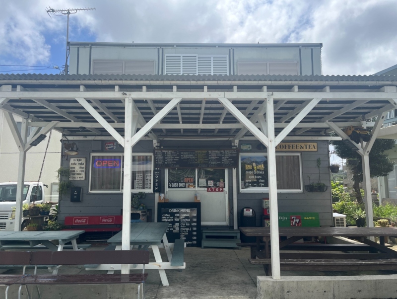 ニライカナイ橋から車で約5分、閑静な住宅街に位置し、ドライブの途中に立ち寄るおやつにぴったりです。