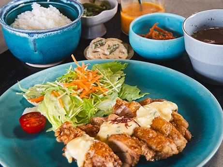 お食事には、自家栽培の野菜や沖縄県産の食材をふんだんに使用。しっかり満足できるボリュームでお腹も心も満たされます。