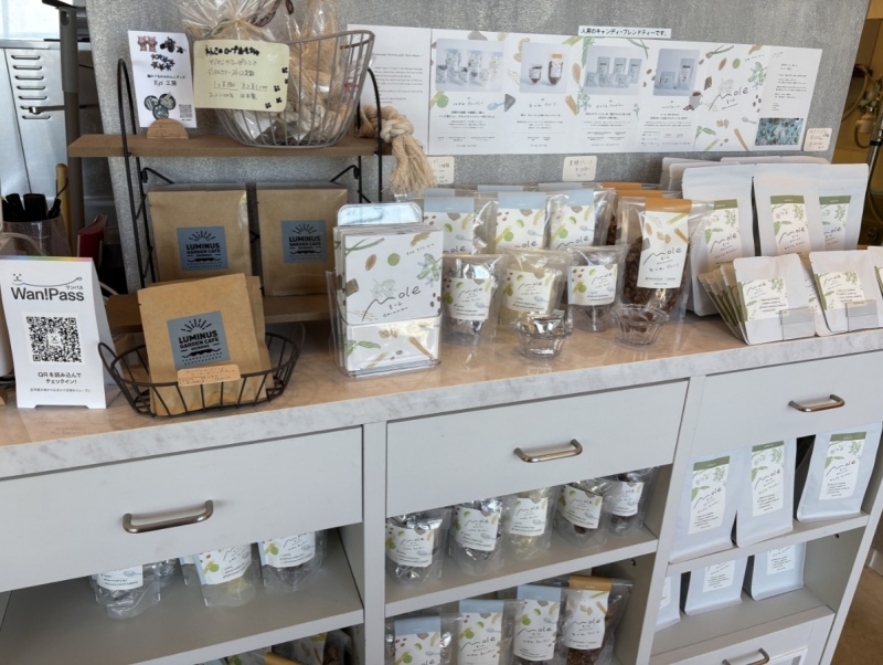 店内では、オリジナルコーヒーや、沖縄ブレンドティー・キャンディ・グラノーラなども販売しております。
