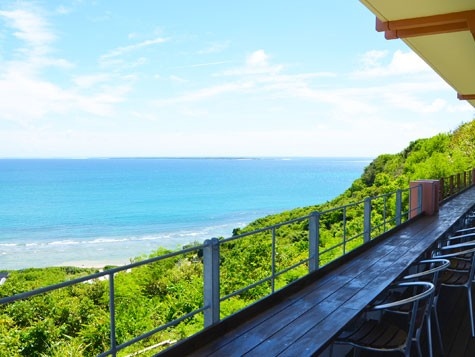 久高島も望めるオーシャンビュー。食材同士のコラボレーションにより生み出された新たな調和の数々。沖縄県産食材と南城市に根付くハルサー(農家)の温かみを、美味しさのスパイスとして詰め込みました。斎場御嶽の発券所がある南城市地域物産館の2階です。