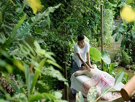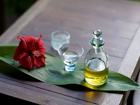緑の木の葉の間から差し込む柔らかい日の光と、野鳥や虫たちの鳴き声が心地よいゆったりとした時間の流れに身をまかせ、海からの贈り物、タカラ貝を温めて、力強く優しい手でボディートリートメントを施術します。