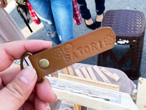 南城市の船越大川近くにある、まっくーるーファームにてレザーキーホルダーの文字入れ体験を行っております。また、出張体験・イベント出店のご依頼も受け付けております。