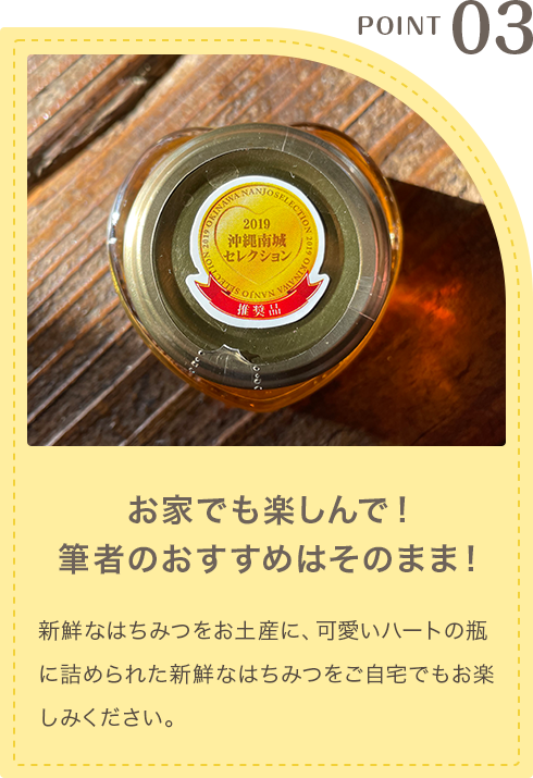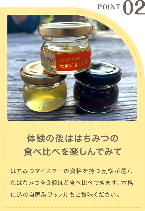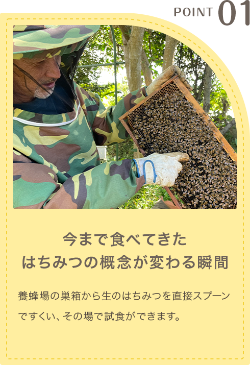 養蜂家のご主人と、はちみつマイスターの奥様が営むはちみつ屋さん。自然いっぱいのリラックスできる空間で、スーパーで販売されているはちみつとは一味違う、濃厚でコクのあるはちみつをご堪能ください。