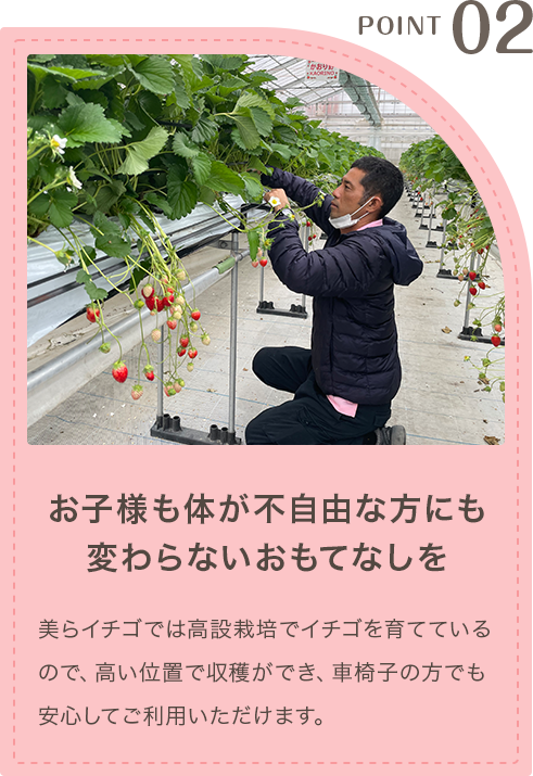 実際に実っているイチゴを自分で摘み取り、1番おいしい熟した状態のイチゴが食べられる貴重な体験です。