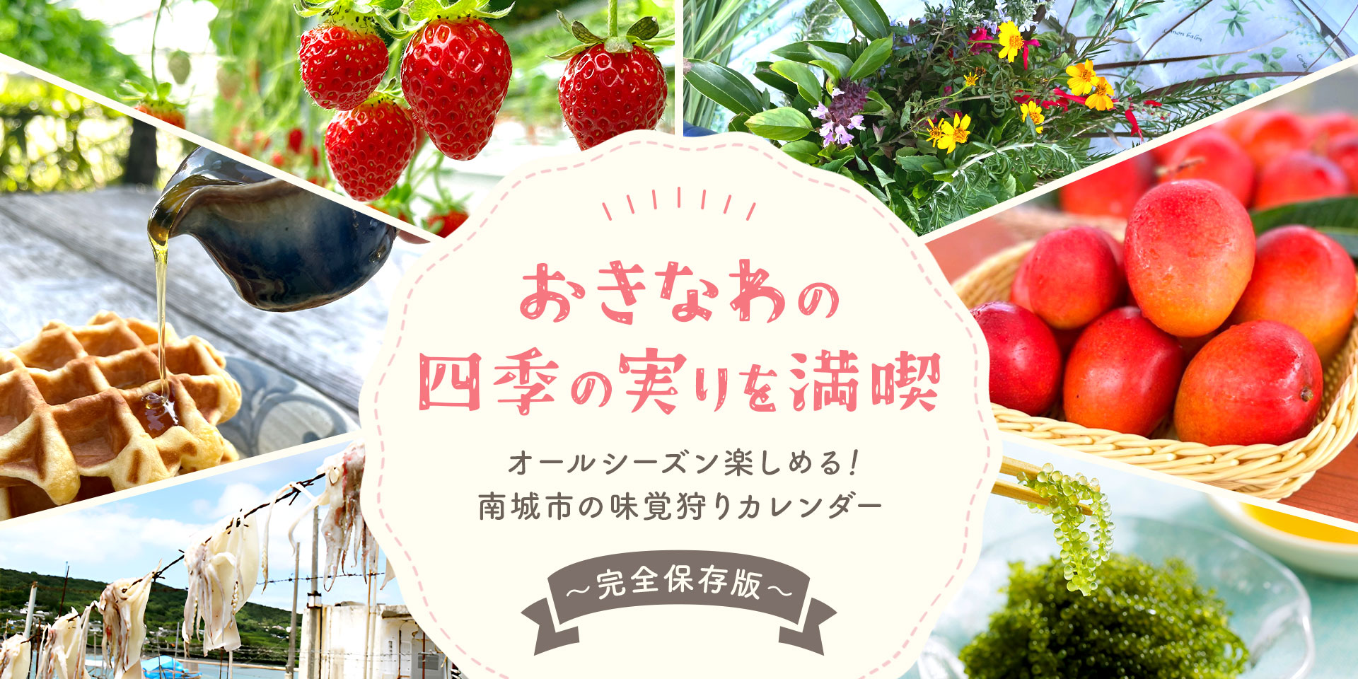 那覇空港からのアクセスもよく、車で約40分ほどで到着できる沖縄県南部の観光地です。沖縄の観光地といえば、北部や離島が思い浮かぶかもしれませんが、海と山に囲まれた自然いっぱいな南城市はハチミツやハーブ、マンゴーや海ぶどう、イチゴなど味覚狩りの宝庫。採れたてを味わう旬体験に出かけましょう。