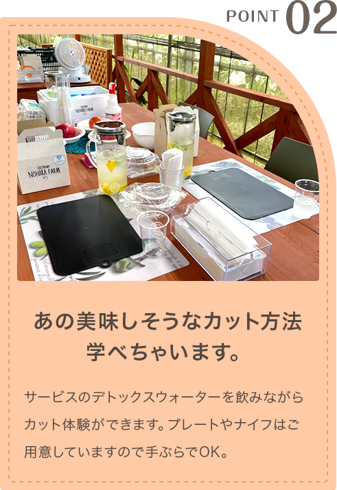 サービスのデトックスウォーターを飲みながら、風通しの良い広々としたウッドデッキで、採れたてのマンゴーをお楽しみください。 花咲カットの方法を教えてくれますので、丸ごとかぶりついて贅沢な時間をお過ごしください。
