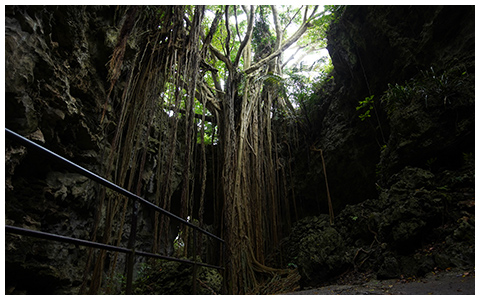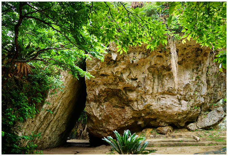 ガンガラーの谷の入り口にあるサキタリ洞遺跡。
