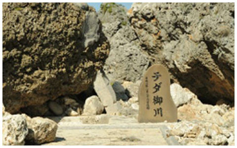 ヤハラヅカサに第一歩をしるし、浜川の清水で身を清め、付近の岩穴に仮住まいしたとされる場所。その後、南城市玉城字仲村渠にあるミントングスクに移動し、安住の地としたと伝えられている。