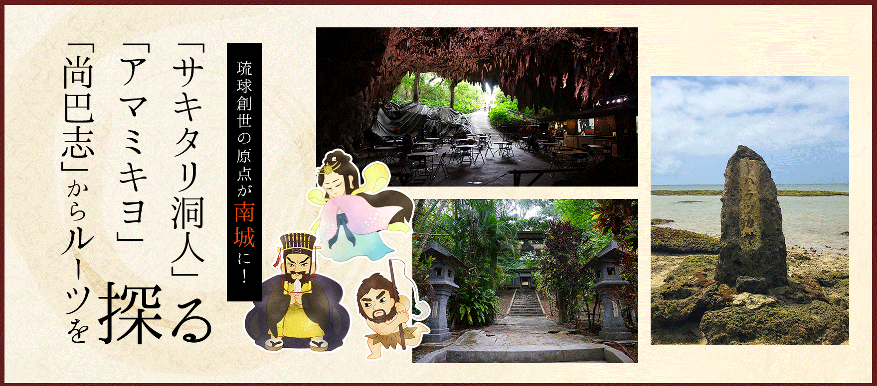 南城市では現在でも、サキタリ洞遺跡(沖縄県実施)の発掘調査が継続され、アマミキヨの神話に基づく信仰を伝える聖地が数多く残されている。