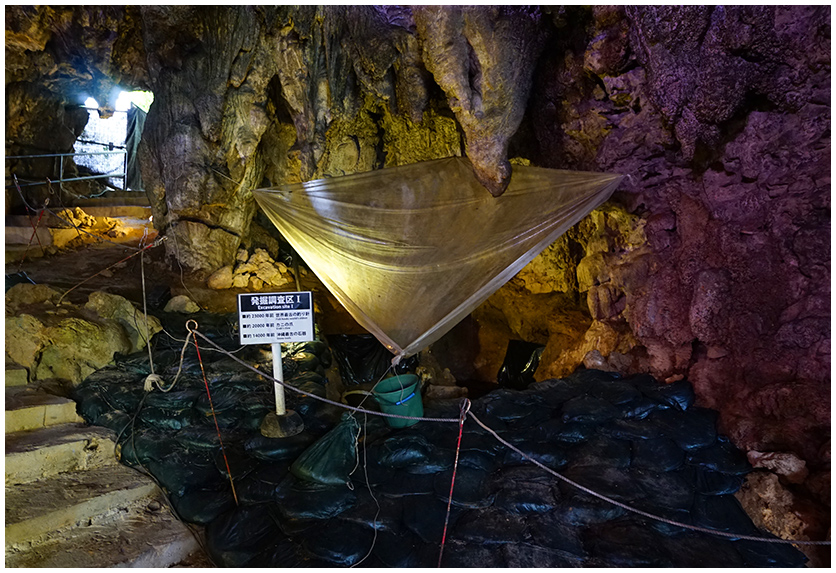 旧石器時代から縄文時代以降の人骨や石器、貝のビーズなどが見つかっているサキタリ洞遺跡。