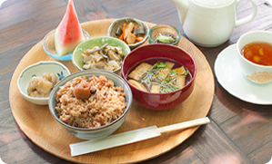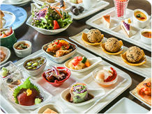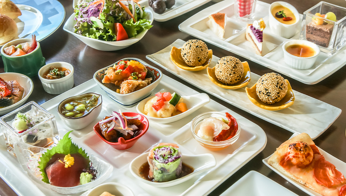 南城市の食材を堪能できるユインチホテル南城のレストラン「サンピア」。地元の素材にこだわるシェフは、自ら知念漁港のセリに参加して鮮魚を調達。野菜も農家へ直接行って収穫したりと、生産者との繋がりを大切にし、料理を提供するという事に余念がありません。中でも11月~5月頃までにしか味わえない貴重な「EMトマト」は、それだけを求めてくるリピーターも多数。人気のスムージーや自慢のデザートは全てグルテンフリーのため、健康志向やアレルギーの方にもおすすめです。料理は約50種類、デザートは約20種類と豊富に取り揃え、食材を通じて地元に触れる事ができるとっておきのレストランです。