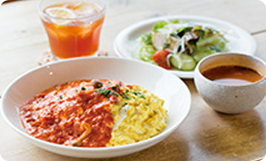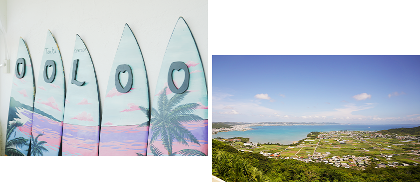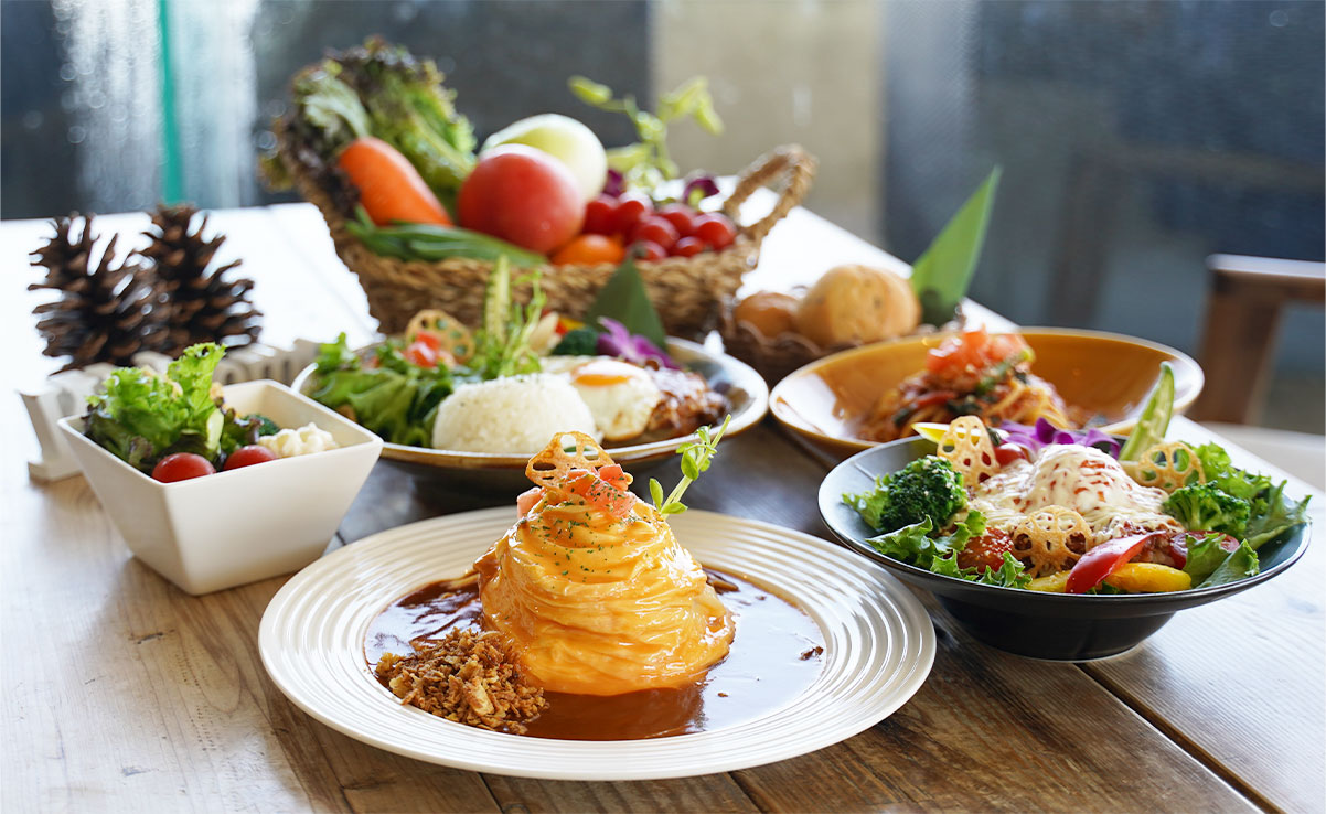 「OOLOO(オール―)」とは沖縄の言葉で「青い」という意味。店内に入ると、開放感のある一面の窓からは中城湾が一望できるオーシャンビュー。やや高台にあるため、運が良ければ雨上がりに虹や雲を見下ろすような体験ができる事も。“地産地消”を意識したメニューで一番のおすすめは、南城市にある「みやぎ農園」の卵を使用したデミオムライス。濃厚でコクがあり、店内で提供されるパティシエ自慢のスイーツにも全て使われています。その他南城市の地元野菜や、ローゼルと言うハイビスカスティーの原料に使用される実の自家製ジャムなど、地元ならではの素材を取り入れたメニューが充実。夜の星空ビューも要チェック!
