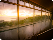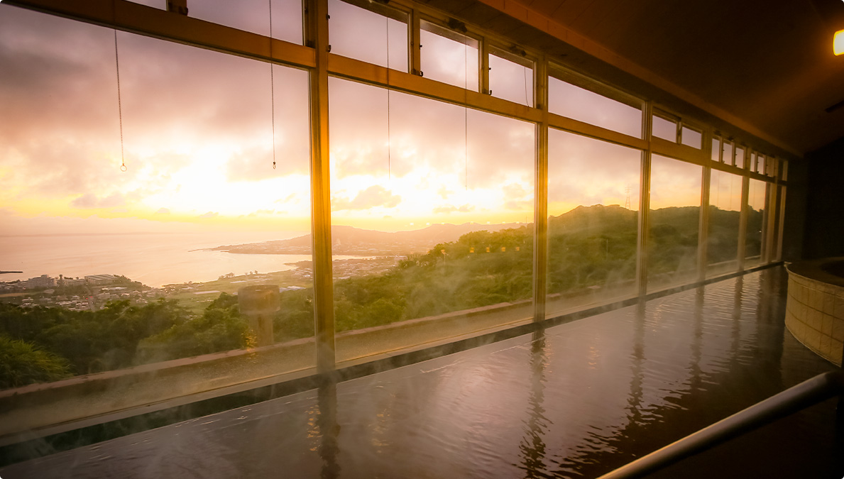 南城ユインチ鉱山の坑井を源泉とする天然温泉。地底2119m~1500m、約500万年前と約5400万年前という太古昔の異なる時代の地層から湧出した源泉が地上に出るまでに自然にブレンドされたものと言われています。沖縄の温泉の特徴は「塩化物強塩泉」という海水くらいの塩分濃度の塩水が特徴とされていますが、メタケイ酸やカルシウム、ヨウ素や鉄など栄養塩類が多く海水とは全く異なる性質をもっています。保温効果・発汗力があがり、新陳代謝のアップや肌の潤いにも効果的。その他様々な効能もあり、旅の疲れを癒すには最適です。