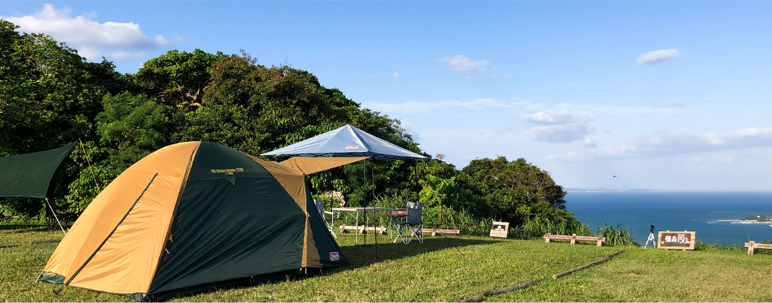 何といっても美しいビーチを臨める絶景ビューは沖縄キャンプならでは。カヤックなどのアクティビティは冬でも可能なので、アウトドアとともに海のレジャーも堪能できます。アウトドアショップが運営しているためレンタル用品も充実。遠方からでも身軽にキャンプ体験ができるのもうれしいポイントです。地域に根付いたイベントも多く開催しているので、キャンプを通じて南城市のディープな部分まで楽しんで。