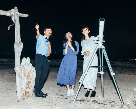 昼間とはひと味ちがう夜の海を楽しむナイトカヤックは、LEDライトが付いた専用カヤックで海を明るく照らし写真映えも抜群!その後ビーチで専任ガイドの元、天体観測を。山に囲まれた南城市は外の灯りが少なく市街地より星が綺麗に見えます。オリオン座など冬の代表的な星座の他、星空ガイドによるこぼれ話など普段知らない冬の空の話を聞いてみて。