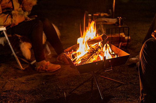キャンプの定番といえば「焚火」。炎が揺れる“ゆらぎ”には「 1/f(エフブンノイチ)」という心地よさを感じさせる要素があります。NEOSアウトドアパーク南城ではこの“ゆらぎ”に加え、目の前に海が広がる場所に位置する事から波の音の癒し効果も加わり、自然界に仕込まれた心地よさを存分に感じるとっておきの体験ができます。
