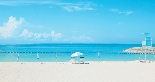 沖縄の神の島とされる久高島に渡るフェリーが発着する安座真(あざま)港に隣接していて、海水浴、マリンスポーツ、ビーチパーティ(バーベキュー)もできるマルチビーチ。 身障者用のバリアフリーのトイレも完備していて、設備も充実しています。ビーチバレーやサッカー大会、シーズンオフにはドッグラン企画などもあり、通年を通して楽しめます。