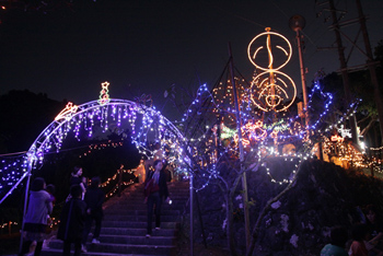 - 小谷の石階段「ちゅら石坂」ではこの時期、光のイルミネーションが夜を彩ります。すべてが地域住民の手づくり。思いのこもったイルミネーションで心も温かに。