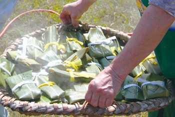 - 旧暦:12月8日。月桃の葉に包んだ餅を歳の数だけ食べ、無病息災を願う。餅と見せかけ葉に包んだ鉄を鬼に食べさせて退治したという南城を舞台にした民話に由来。