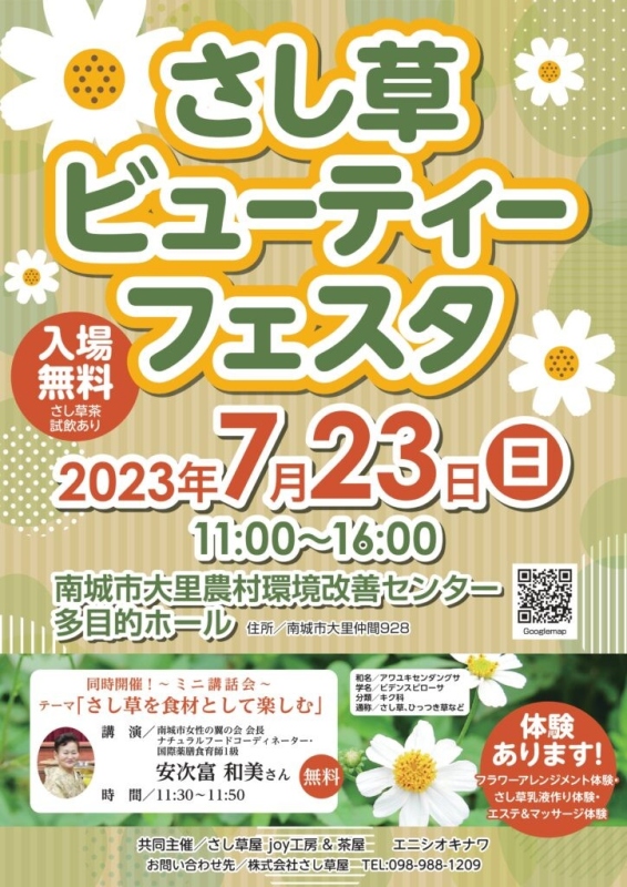 11時30分からはナチュラルフードコーディネーターの安次富和美先生が、さし草の楽しみ方をお話しします!