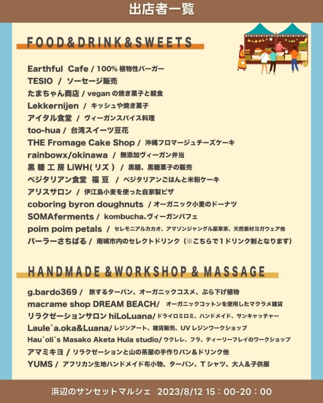 8/12(土)浜辺のサンセットマルシェwith sunset yoga 開催のお知らせ
