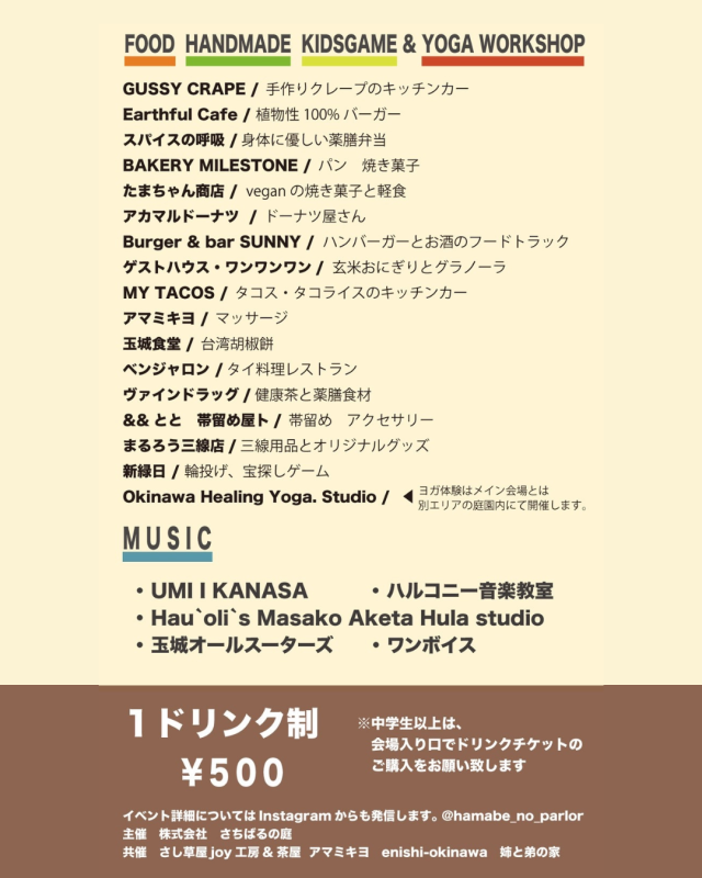 | 場所 | 南城市玉城玉城19 さちばる広場【浜辺の茶屋となり】 |