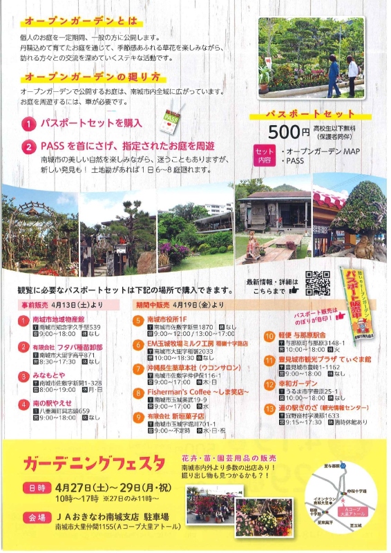 オープンガーデンで公開するお庭は、南城市内全域に広がっています。