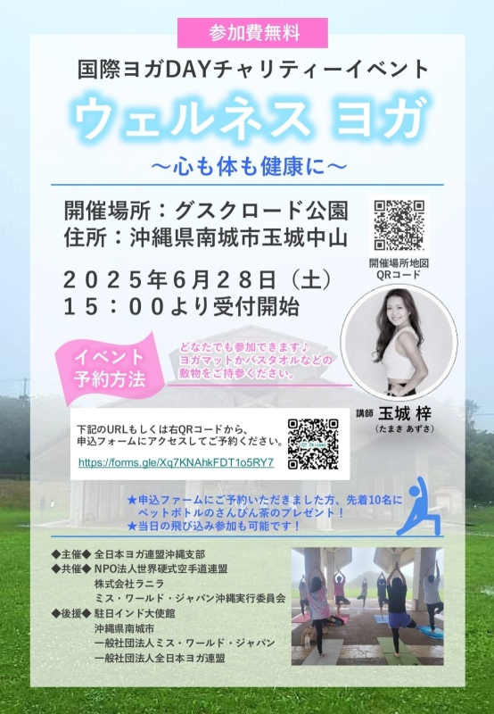 6月28日は、南城市グスクロード公園でみんなでヨガを楽しみましょう。