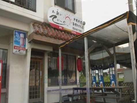 久高島への連絡船が出る安座真港の正面にあり、1階にはインド・ネパール料理屋があります。