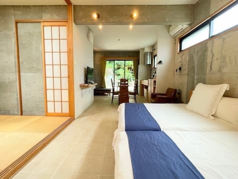 那覇空港から車で40分。昔ながらの沖縄を感じる事のできる沖縄本島南部に位置する南城市、あざまサンサンビーチ目の前、一棟貸切のヴィラ。