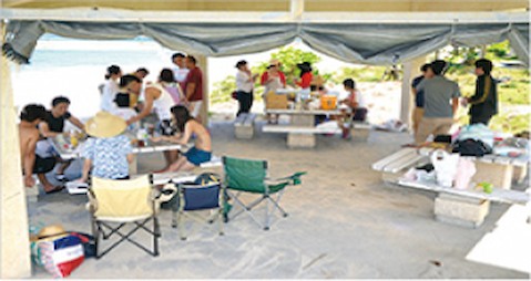 沖縄のビーチの楽しみ方の一つとして忘れてならないのが、ビーチパーティー!一般的にはバーベキューですが、あざまサンサンビーチでは、器材も食材も揃っているので、手ぶらで来て、手ぶらで帰ることも可能です。しかもちゃんとした屋根付きの東屋(あずまや)も完備。さらには、機材の設置はスタッフがしてくれるという至れり尽せりで、ビールサーバーまでレンタル可能です。