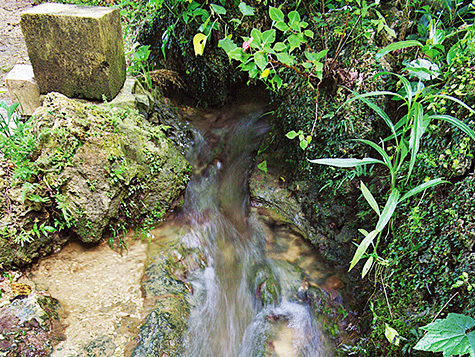 浜川御嶽から農道を400mほど行くと、右方向への案内板が。渾々と水が湧き出る場所が、沖縄の稲作発祥地といわれる「受水走水」です。神田もあり、毎年旧暦1月に田植えの儀式「親田御願(ウェーダウガン)」が行われます。ひんやりとした水に手をつけると、少し清められた気分になりませんか?詳細ページ