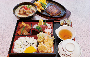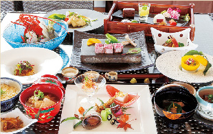 - 百名伽藍和食の会席料理に沖縄独自の調理法や地元の新鮮な食材をふんだんに使用。彩りも鮮やかな「和琉会席」が楽しめます。(事前予約制)