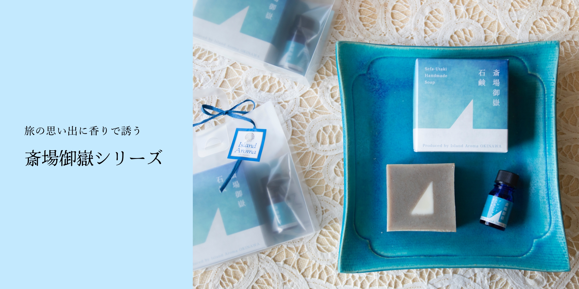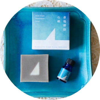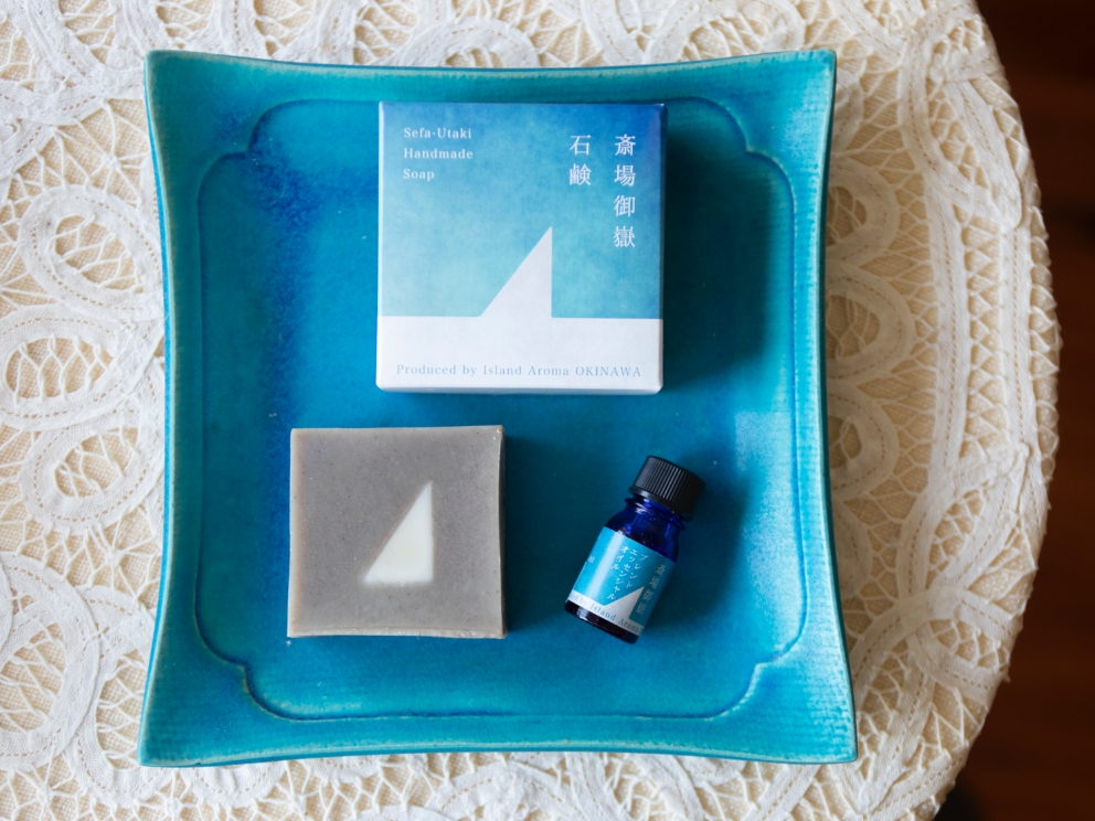 この場所の静寂さや神聖さを感じさせるアイテムが、「斎場御嶽石鹸」と「斎場御嶽ブレンドエッセンシャルオイル」のふたつをセットにした「斎場御嶽シリーズ」です。斎場御嶽からすぐ近くの「Island Aroma OKINAWA」は、身体に優しい手作りの石鹸を、ひとつひとつ丁寧に手作りしている工房です。