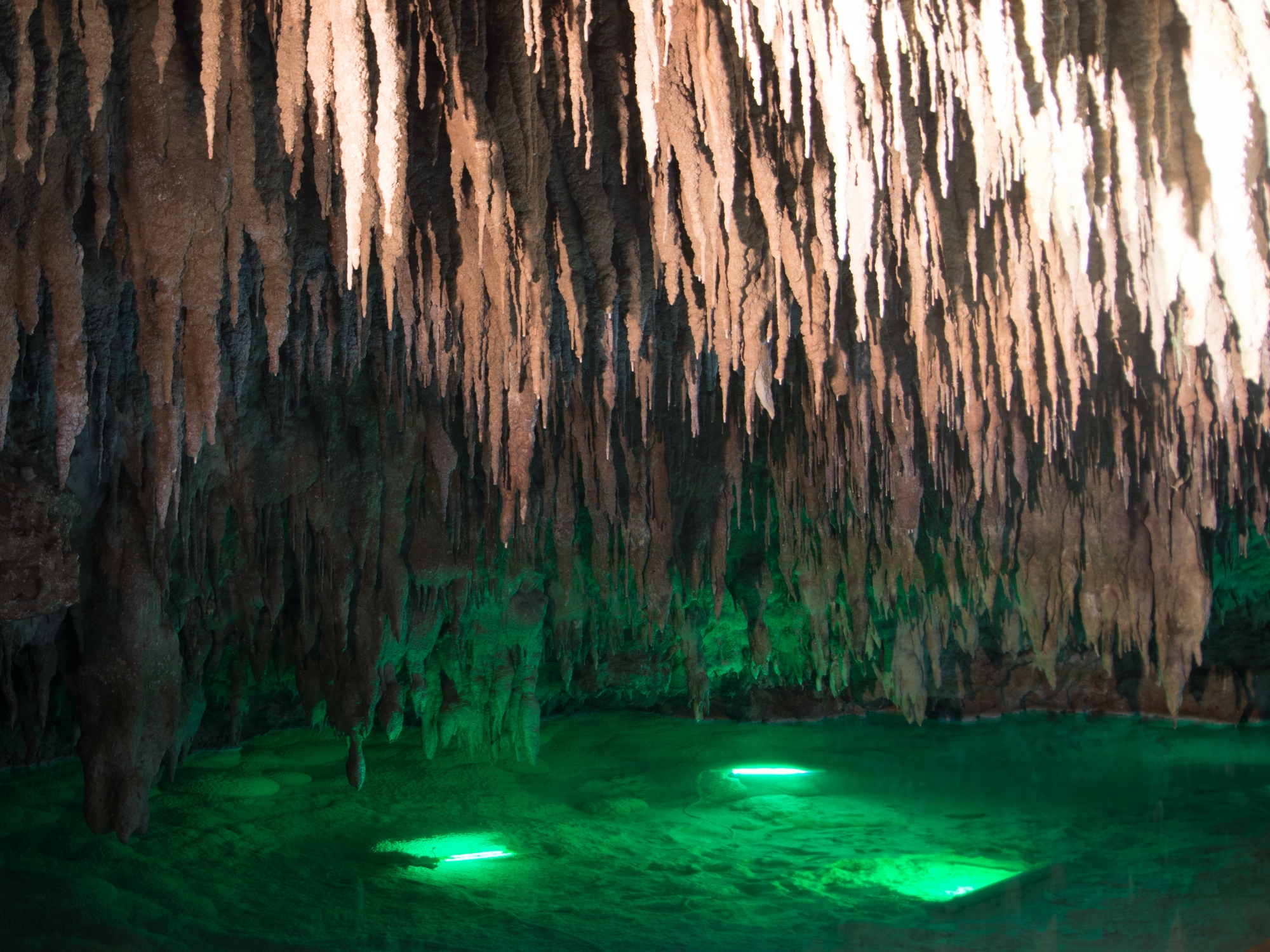 南城市玉城前川。ここに沖縄の自然・文化が体験できる「おきなわワールド」があります。南城市は名水百選にも選ばれた「垣花樋川」があり、水に恵まれた土地。おきなわワールド敷地内には、30万年の年月をかけて大自然が創り上げた鍾乳洞「玉泉洞」があり、洞窟内を流れる地下川や滴り落ちる水の音、多様な鍾乳石など神秘的な空間が広がっています。