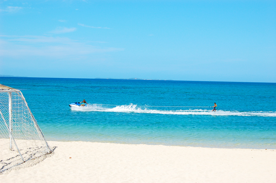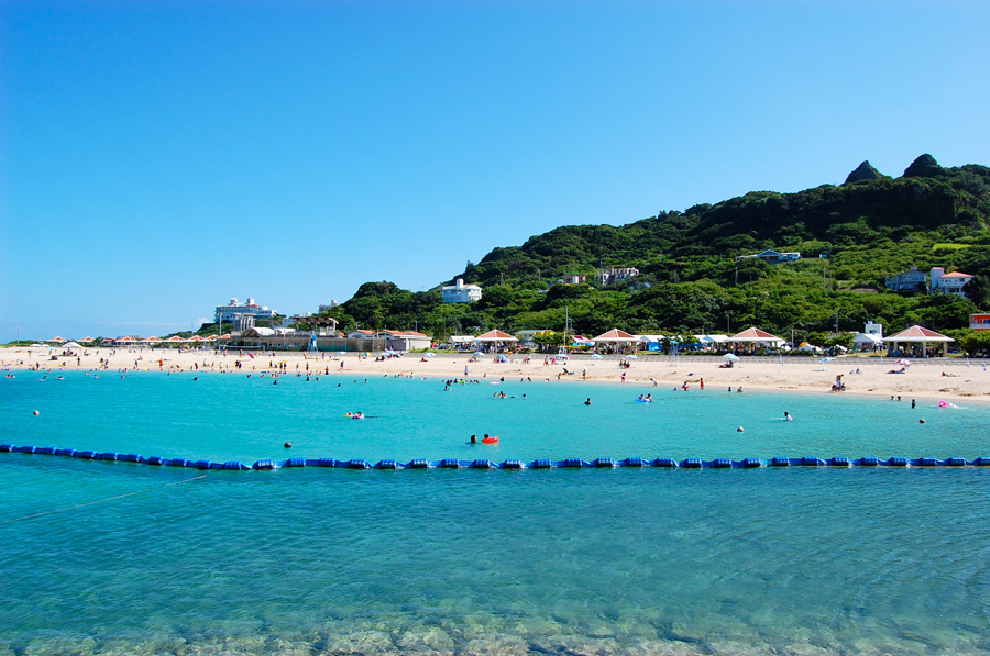 白い砂浜と澄んだ青い海は、貴重な天然の砂浜。