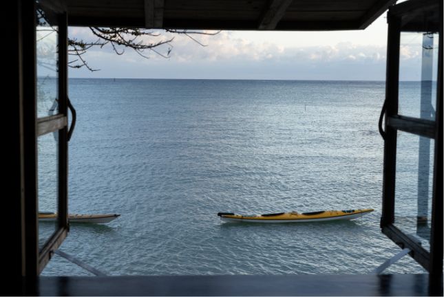 天気が良い時は、下のビーチから出発して、カヤックを楽しむこともできますよ。詳しくは「姉と弟の家」へお問合せください。