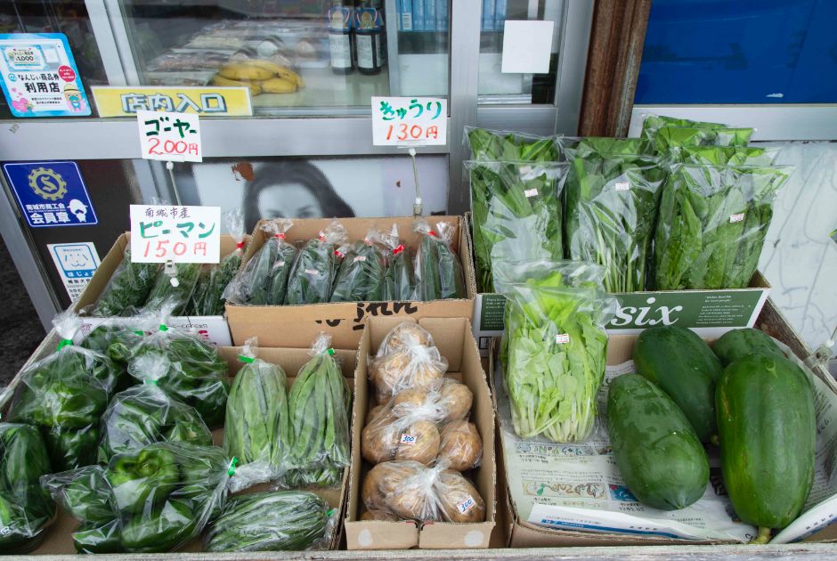 ここは島の暮らしを支える地元ならではの売店「みなとストアー」です。軒先には、ゴーヤー、冬瓜、パパイヤなど、沖縄の食卓に並ぶ野菜も販売されています。夏になると販売する「沖縄ぜんざい」(200円)は、地元の子どもたちにも大人気。食品だけでなく、トイレットペーパーや洗剤など、島の人たちの暮らしに欠かせない生活用品も並んでいます。ちょっと懐かしい雰囲気のする売店で、買い物を楽しむのも良い体験ですね。