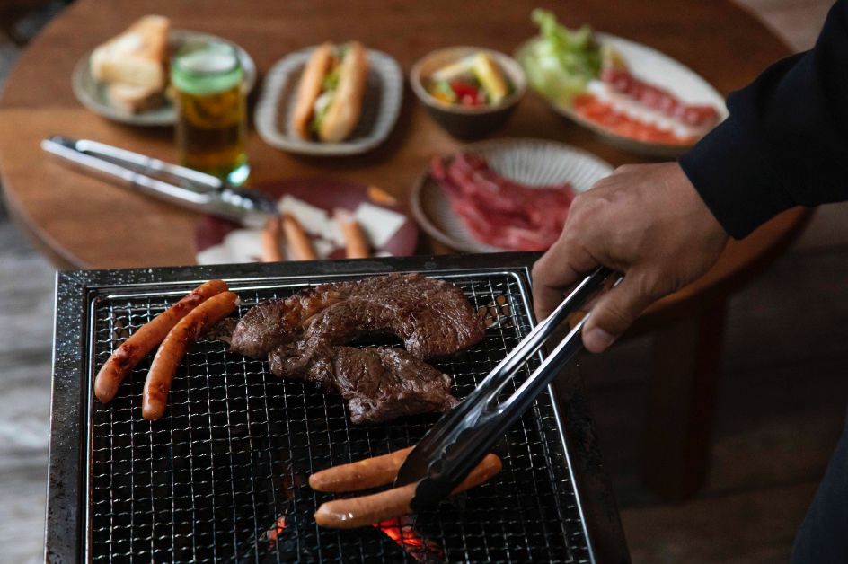 テラスでBBQが楽しめる。テラス横には、稲福さんが手作りした露天風呂も。喧騒を離れた空間で、心を開放したい