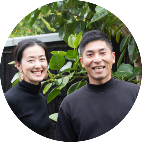 南城市玉城にある、暮らすように滞在する2棟限定の宿「姉と弟の家」を夫婦で営む(写真左は麻里さん)。宿泊にいらっしゃるお客様にも、地域の魅力や楽しみ方を伝えている。